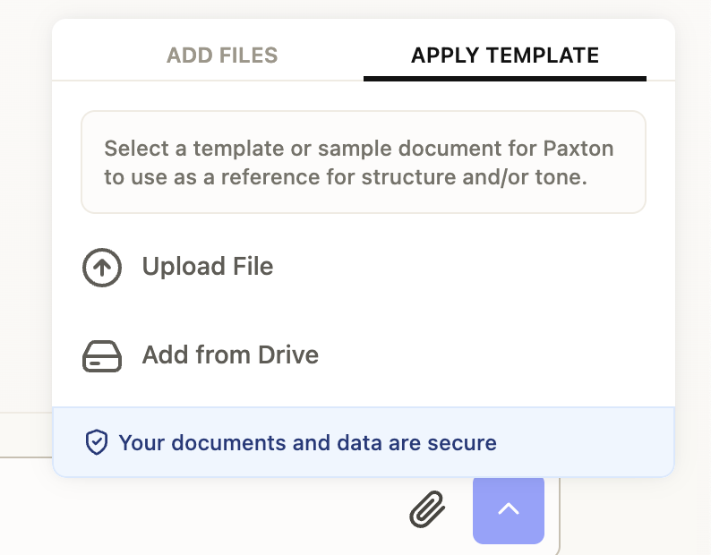 The "Draft with Template" feature is within the Al Assistant that allows you to generate new documents by combining a selected template with one or more source files.