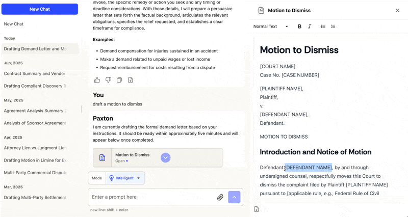 1. **Generate a draft**: Create a document using Paxton’s AI assistant